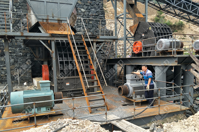 我們石料廠有一處石灰?guī)r礦山,與鼎力合作建的這條時產600噸石子生產線就是用石灰?guī)r作為加工原料的。項目的主機設備采用了重型錘式破碎機PCZ1615,每小時產量為600-700噸,它的出料粒型和產量能都滿足生產需求。