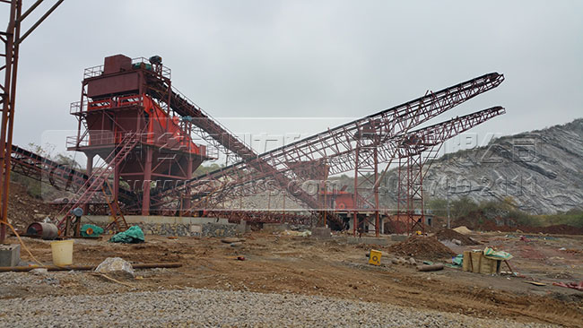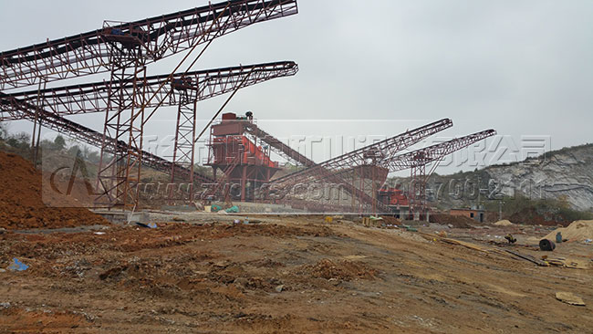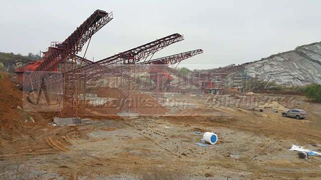 時產(chǎn)500噸石灰石砂石骨料生產(chǎn)線:PCZ1615重型錘式破碎機、ZGC1550振動給料機、2YK2460振動篩*2臺等等