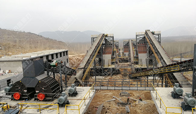 設(shè)備配置:振動(dòng)給料機(jī)ZGC2050*2臺(tái)、重錘式破碎機(jī)PZC1620*2臺(tái)、整形破碎機(jī)PC1220*4臺(tái)、振動(dòng)篩3YKZ40100*8臺(tái)
