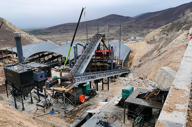 【設(shè)備配置】:采用中譽(yù)鼎力套礦山設(shè)備,如DLZGC2050振動(dòng)給料機(jī)、DLPCZ1820重型錘式反擊破碎機(jī)、DLPC1622整形式破碎機(jī)、DL3YKZ3070振動(dòng)篩、DLQMC脈沖袋式除塵器(11臺(tái))等,以及中譽(yù)鼎力成套智能礦山管理系統(tǒng)和低壓配電管理系統(tǒng)