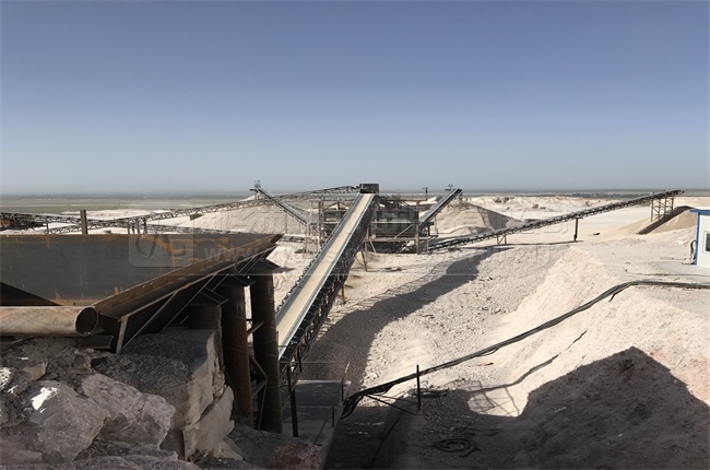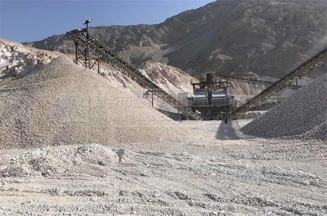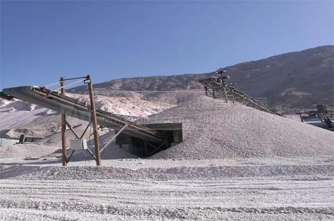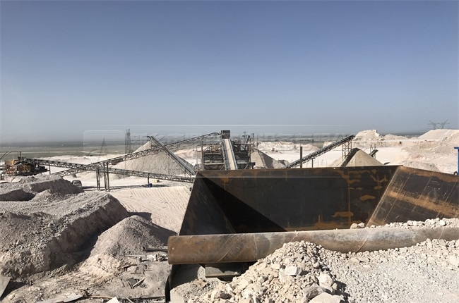 與純石灰?guī)r相比,化工石灰?guī)r含鈣量較高,一般呈致密塊狀產(chǎn)出,顏色常為灰白、淺灰、灰色、深灰及淺黃、淺紅等,一般采用露天開采,電鏟汽車皮帶運(yùn)輸,選礦采用破碎篩分方法。在這條時(shí)產(chǎn)500噸破石子生產(chǎn)線圖片中我們可以看到,石灰石被均勻的輸送到入料倉(cāng)內(nèi),依次經(jīng)過(guò)振動(dòng)給料機(jī)、破碎機(jī)、振動(dòng)篩加工處理成客戶需要的石子規(guī)格。