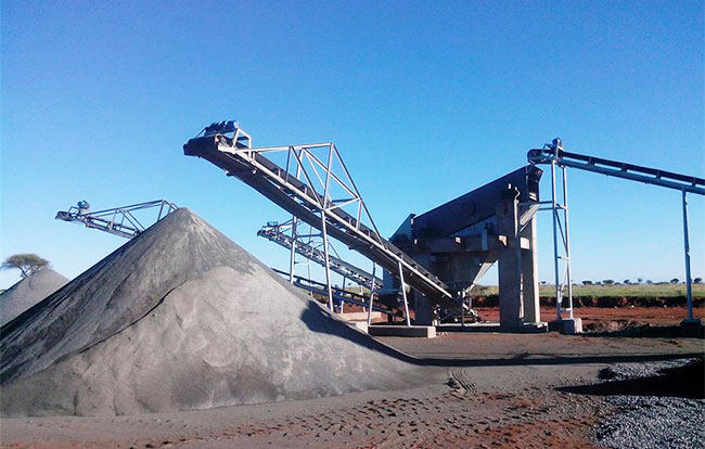 機(jī)械搭配:原料堆、震動喂料機(jī)、HD125顎式移動碎石機(jī)、PF1520pf反擊破移動碎石機(jī)(2臺)、篩分機(jī)械、砂石洗選機(jī)、傳送機(jī)若干臺