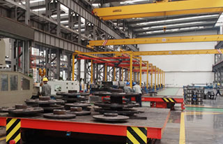 采用42CrMo材質(zhì)進(jìn)行粗車(chē),調(diào)質(zhì)處理增加強(qiáng)度和韌性,精車(chē)后在龍門(mén)鏜銑床上銑出與錘盤(pán)接觸的方形配合面,與傳統(tǒng)轉(zhuǎn)子相比,使用壽命提高大大提高。