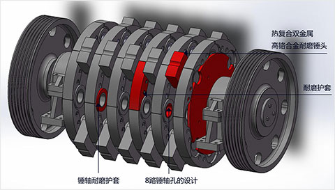 錘軸孔上設(shè)計(jì)護(hù)套、轉(zhuǎn)子盤(pán)上設(shè)計(jì)護(hù)圈,性高,無(wú)需每天更換,哪塊有損壞更換哪塊,增加了開(kāi)機(jī)時(shí)間