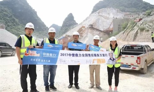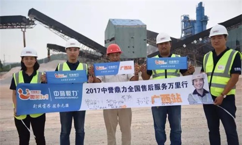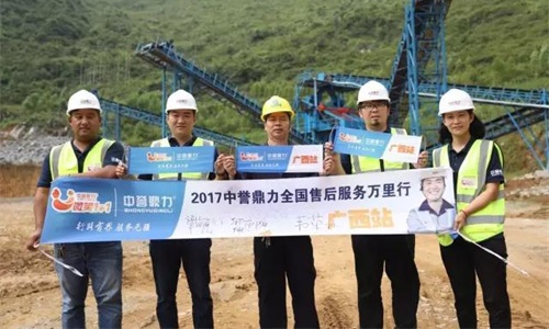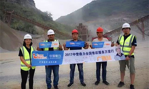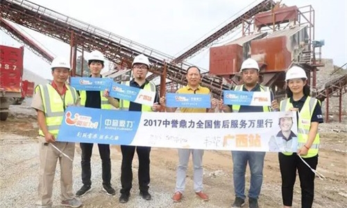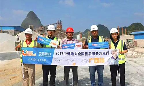 第一站桂林市獨石山采石場微笑1+1中譽鼎力2017售后服務(wù)萬里行活動湖南站已經(jīng)圓滿結(jié)束。離開了湘楚湖南,售后萬里行團隊又趕赴美麗廣西。于9月12日,中譽鼎力廣西售后服務(wù)萬里行從獨石山采石場正式起航! 此次售后萬里行,團隊成員將深入廣西區(qū)域砂石骨料生產(chǎn)線現(xiàn)場,為我公司客戶提供