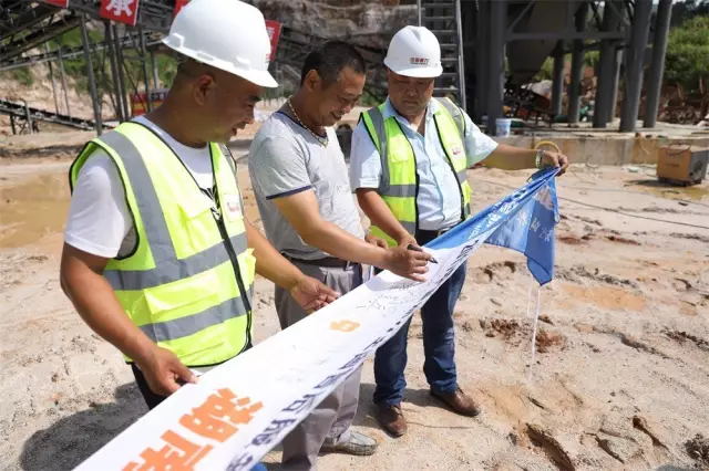 售后服務(wù)團隊與抗應(yīng)洞采石場負(fù)責(zé)人楊培軍合影