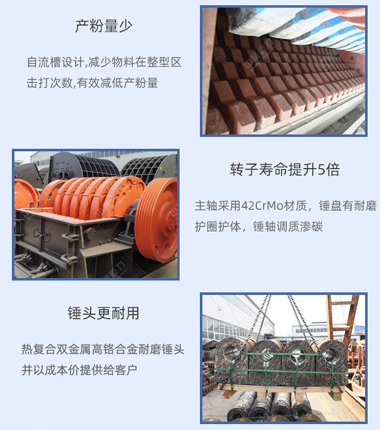 作為內生產(chǎn)大型錘式破碎機生產(chǎn)基地,根據(jù)市場需求,中譽鼎力有PCZ重型錘破和XPC整形錘破兩種,型號齊,時產(chǎn)量從100-3000噸不等,其中pcz2125重錘破時加工能力可達3000噸,在河南駐馬店恒強礦業(yè)、衛(wèi)輝市資源有限公司、河北井陘茂鑫礦業(yè)、河南禹州鑫利祥建材等多地已有使用。