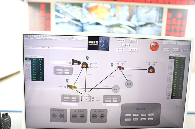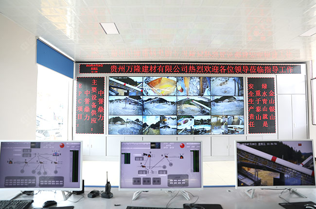 貴州省萬(wàn)隆建材生產(chǎn)線砂石生產(chǎn)智能管理系統(tǒng)的總控制室,各設(shè)備的生產(chǎn)畫面掌控
